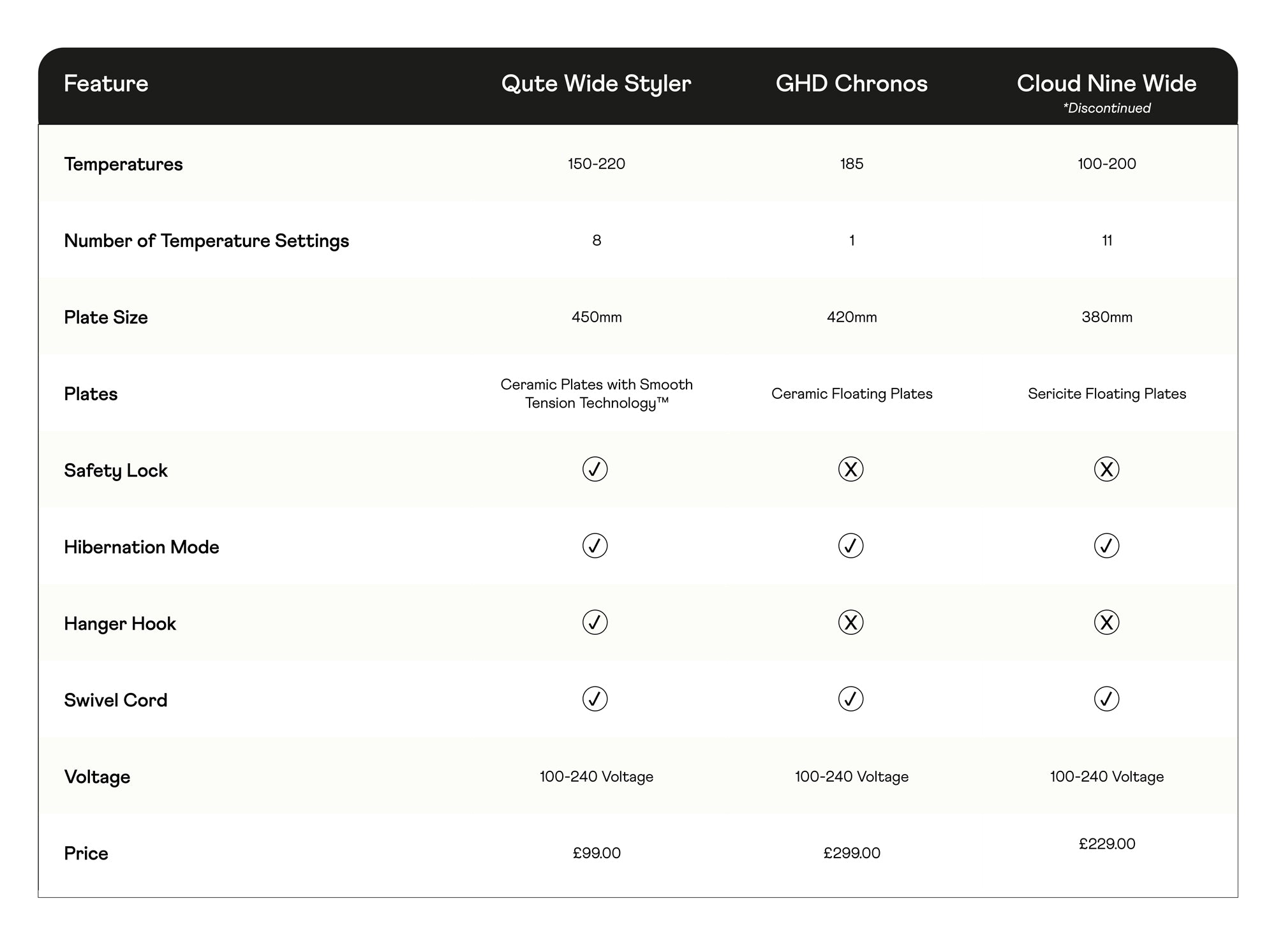 “I’ve used a lot of straighteners over the years, but nothing compares to my Qute ones. They heat up fast, glide through my extensions effortlessly, and never snag or pull. I love that I can control the temperature, so I know my extensions are protected!”